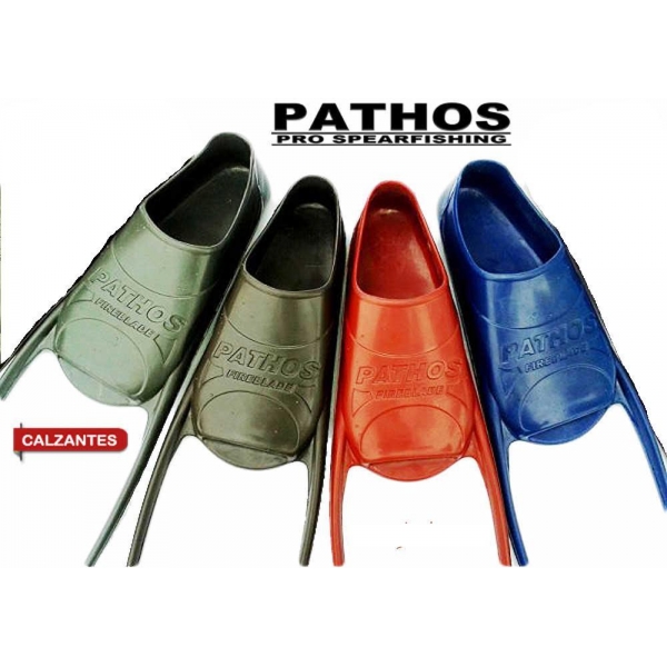 El calzante fireblade Pathos, formado a partir de 3 compuestos diferentes de caucho vulcanizado, ofrece un confort excepcional combinado con un impresionante ligero peso (de solo 370 gramos) incomparable con casi cualquier calzante de otras marcas. Los nervios son muy delgados para que las palas trabajen mejor, con una forma casi de U consiguiendo así no cansar demasiado las piernas, pero al mismo tiempo tener un empuje óptimo tanto en el fondo como en superfície.