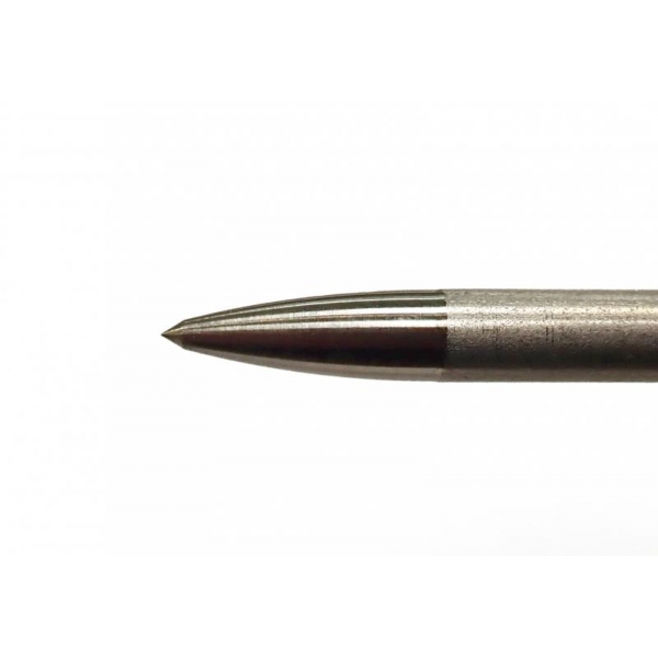 Encaje del obús reforzado con radio curvo de mecanización que hacen casi imposible la rotura de la varilla por este punto tradicionalmente débil. Diseño polivalente para obuses metálicos y de Dyneema (recomendamos pulido de los perfiles con cable de acero para este uso). Su diseño, unido a los parametros utlizados para el templado, consiguen una extraordinaria resistencia a la rotura en sentido de apertura del entalle de 190Nw y 40º de ángulo.