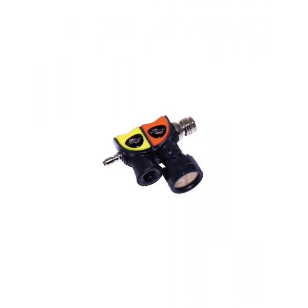 Se conecta al latiguillo del jacket y funciona con aire de la botella. Doble función: en superficie se puede escuchar a más de 1 km de distancia y a unos 100 m de distancia bajo el agua.