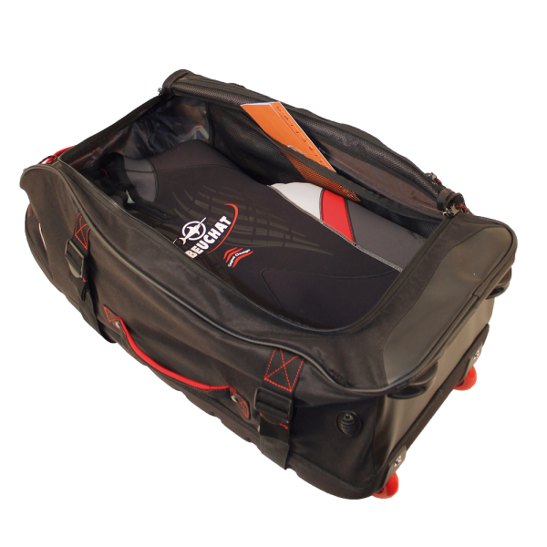 > Bolsa con ruedas y tirador telescópico de altura regulable.