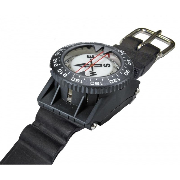 El compás de muñeca Cressi es un moderno instrumento que permite fáciles lecturas en cualquier condición. El plato magnético, sobre el cual está insertada la rosa de los vientos, comprende la posibilidad de un amplio modo basculante en todas direcciones, con el fin que la lectura resulte segura incluso si el instrumento no está perfectamente horizontal.