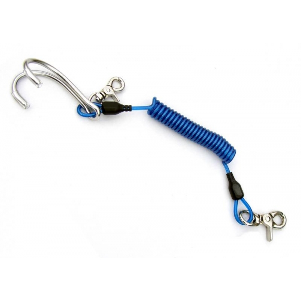 Extensor con ánima de acero inoxidable. Mosquetón en un extremo y gancho para anclaje al fondo para buceo con corrientes.