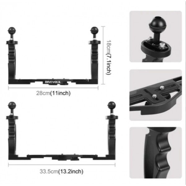 – Mango recubierto con EVA suave– Doble tornillo 1/4 PT– Cabeza de bola de aluminio
