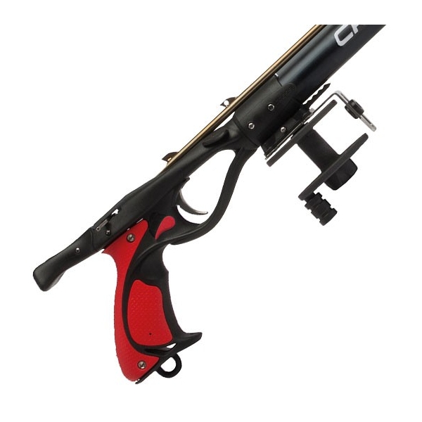 Nuevo mecanismo metálico desarrollado 100% en Cressi Italia. Combina elementos en acero inoxidable con elementos exclusivos en Teflón autolubricante para minimizar rozamientos. Tiene una extraordinaria relación entre sensibilidad del gatillo y resistencia al desenganchado accidental aun utilizando doble goma potentes. Sujeta hilo retráctil de acero inoxidable lateral.