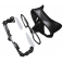 Las hebillas, ancladas en la montura para una óptima estabilidad de la máscara y una tensión siempre a determinar por el usuario, son completamente plegables y basculantes en todos los sentidos. Por lo tanto la posibilidad de rotura es casi imposible. Este tipo de anclaje mejora también la estabilidad de la máscara, ya que la tensión de la tira se produce sobre un elemento rígido y los movimientos del tubo no afectan al facial.