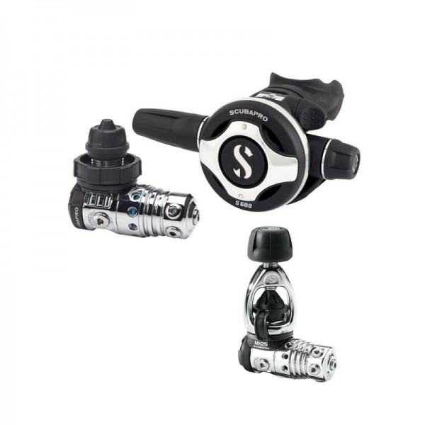 El MK25 EVO ofrece una excelente resistenciaa la congelación, una espléndida sensibilidad de inspiración y una entrega inmediata del aire demandado. La S600, dotada de una resistente carcasa de fibra de vidrio y deun aro y tapa frontal de acero inoxidable, permite obtener el aire de forma constantey sin esfuerzo a cualquier profundidad. Un regulador de impecable funcionamiento acualquier temperatura del agua y en las condiciones de buceo más exigentes.