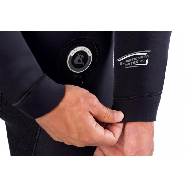 Disponible en versión de 5 mm. Chaqueta (opcional) en 5 mm, con mangas de 3,5 mm, es un elemento muy importante ya que evita el tradicional inconveniente de las versiones modulares cuando se utilizan con las dos piezas, dada su gran elasticidad.