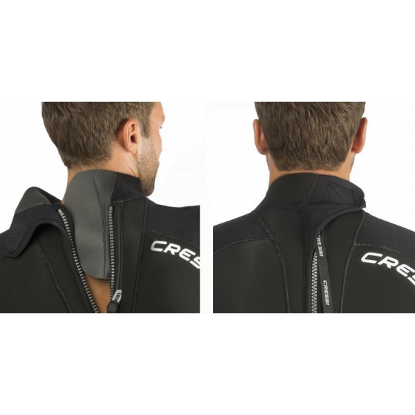 Cuello con diseño Anatomic Shape, con preformado a 120º para un máximo confort. Notable mejora del diseño que reduce la entrada de agua en este punto crítico: la solapa de cierre es ahora mucho más amplia y la zona de la nuca está prolongada para evitar infiltraciones al inclinar el cuello bajo el agua.